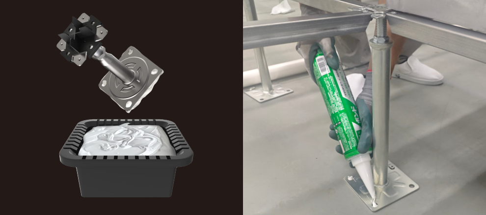 為確保地板系統(tǒng)極致的穩(wěn)固性與靜音體驗(yàn),本項(xiàng)目全線采用日本小西(Konishi Co., Ltd.)KU928高性能聚氨酯膠粘劑進(jìn)行支架粘接。